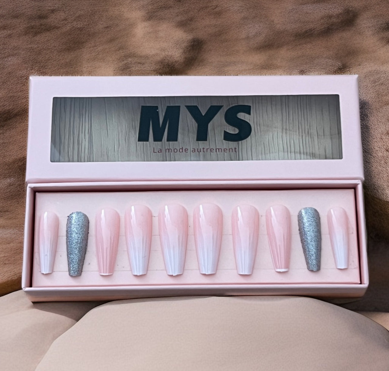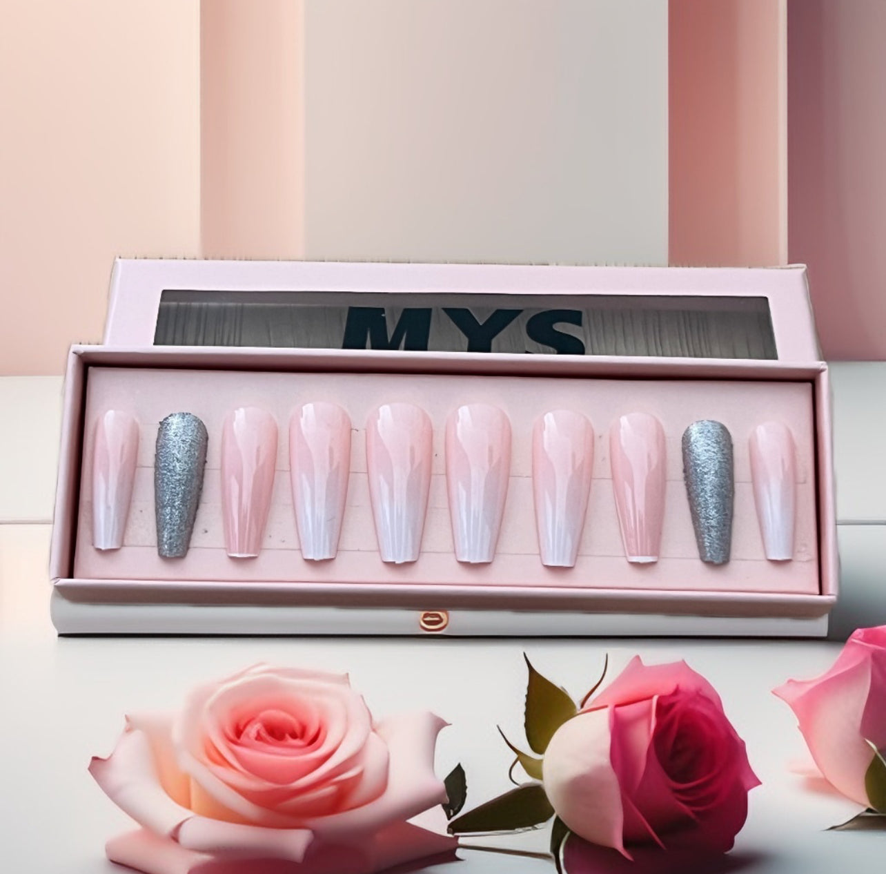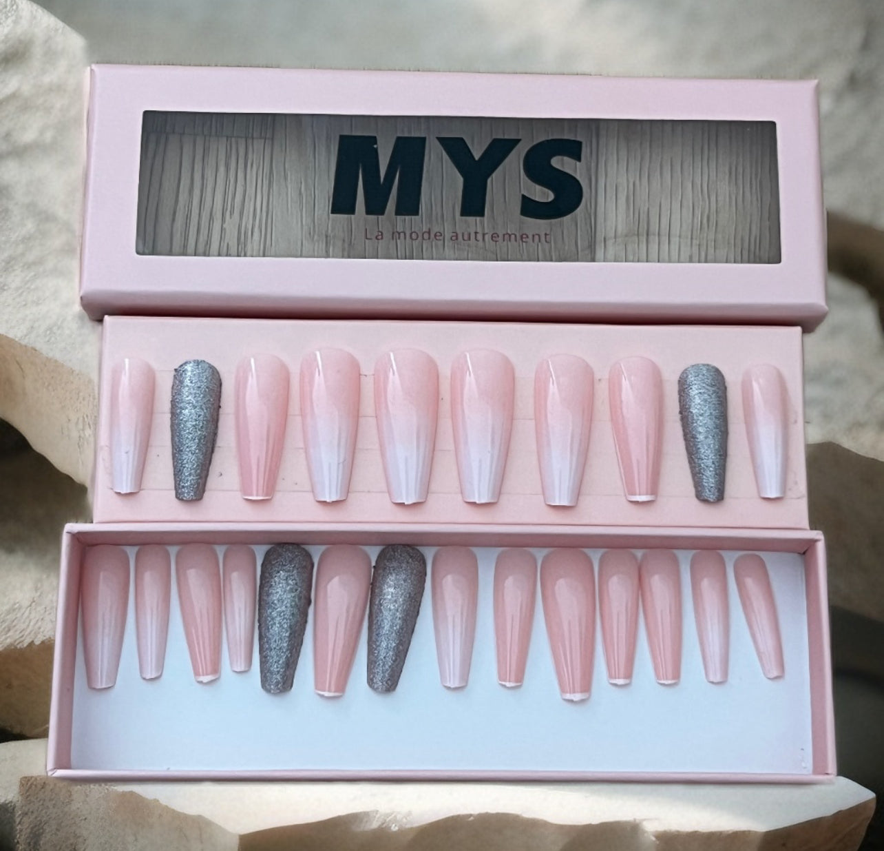 Argent miroir brillant et chic. 24 pièces de faux ongles.
