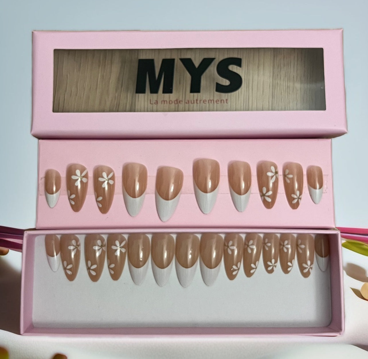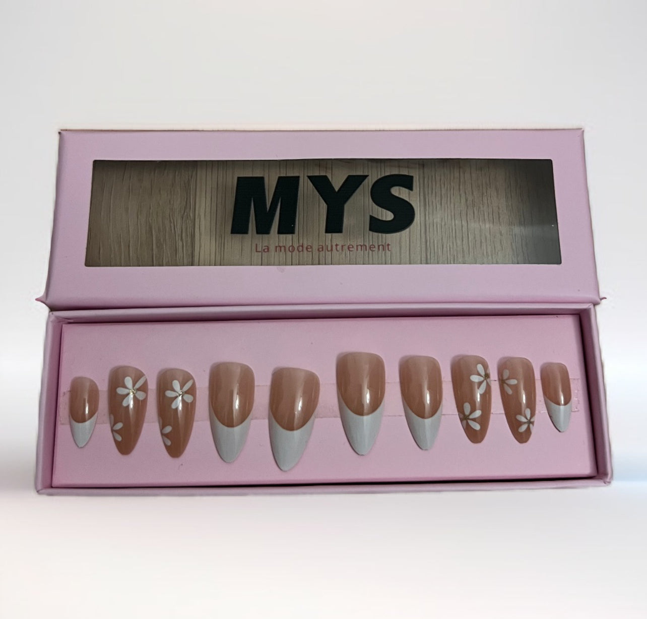 Le coffret contient 24 pièces de faux ongles, un séparateur d’ongles, une lime et deux colles à ongles.