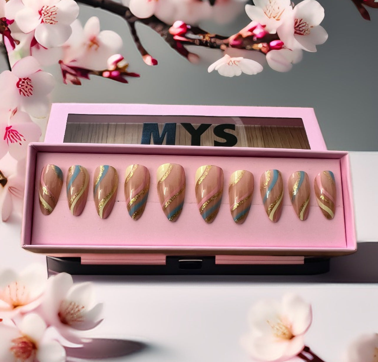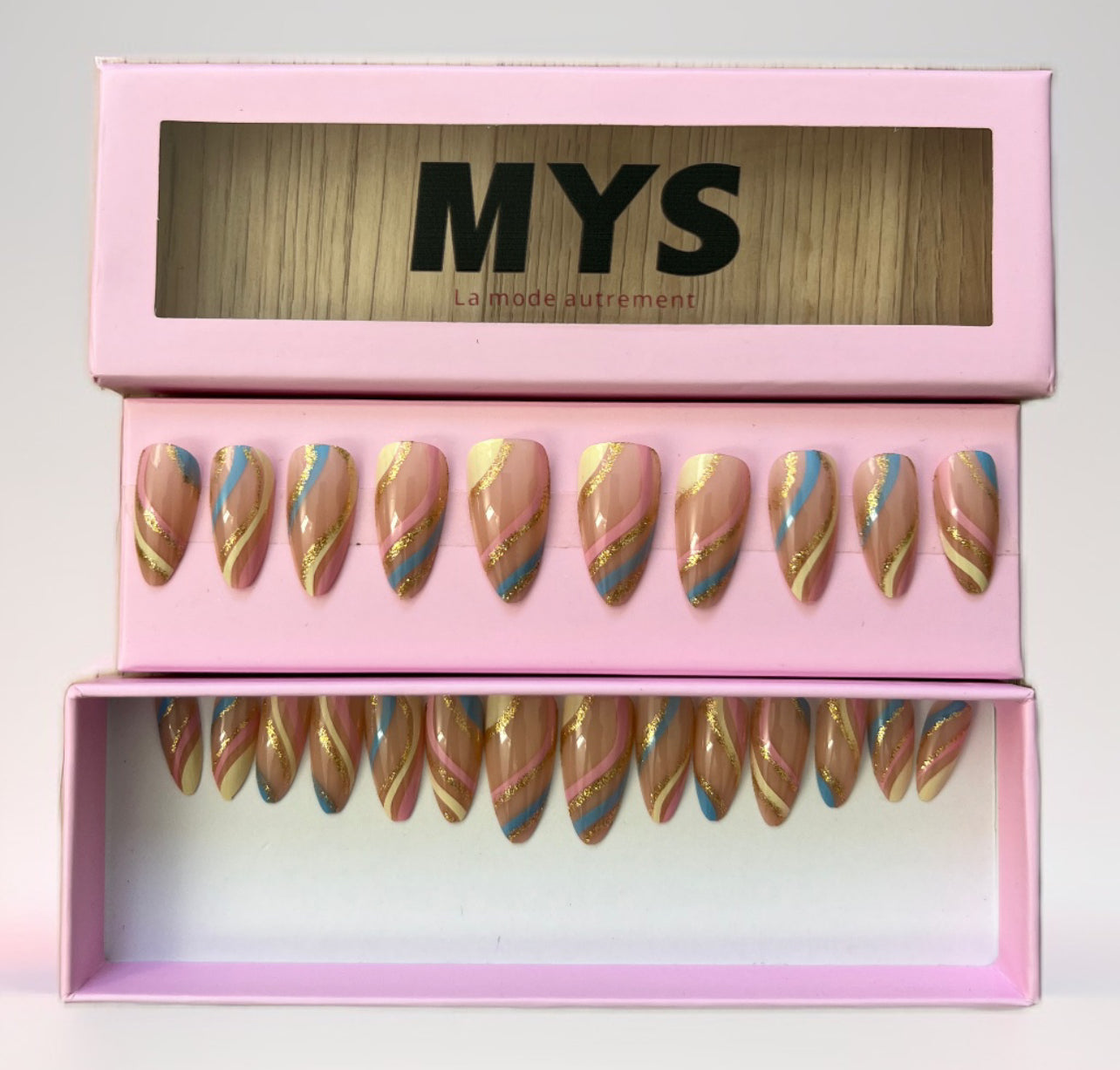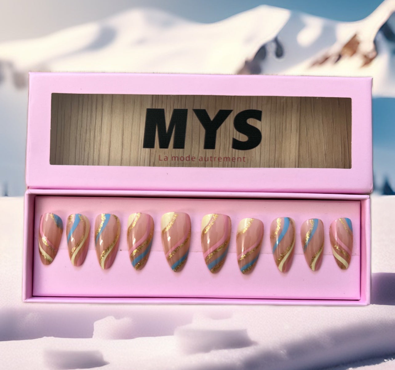 Le coffret contient 24 pièces de faux ongles, un séparateur d’ongles, une lime et deux colles à ongles.