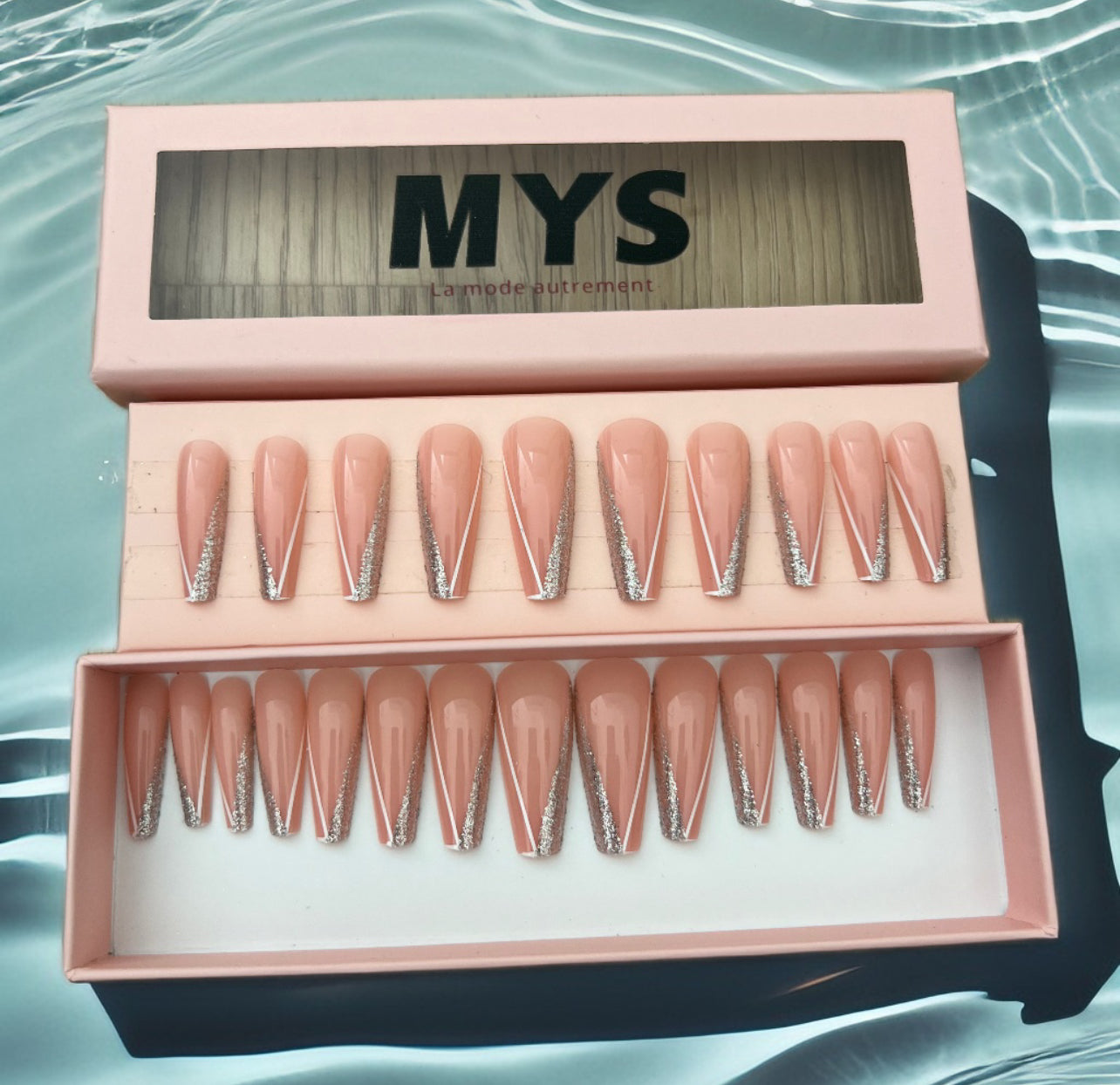 Le coffret contient 24 pièces de faux ongles, un séparateur d’ongles, une lime et deux colles à ongles.