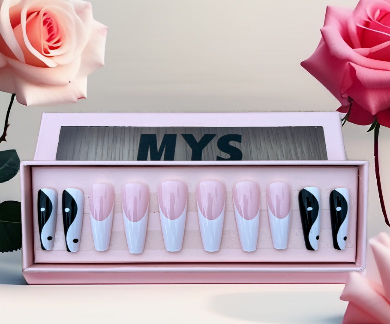 Le coffret contient 24 pièces de faux ongles, un séparateur d’ongles, une lime et deux colles à ongles.