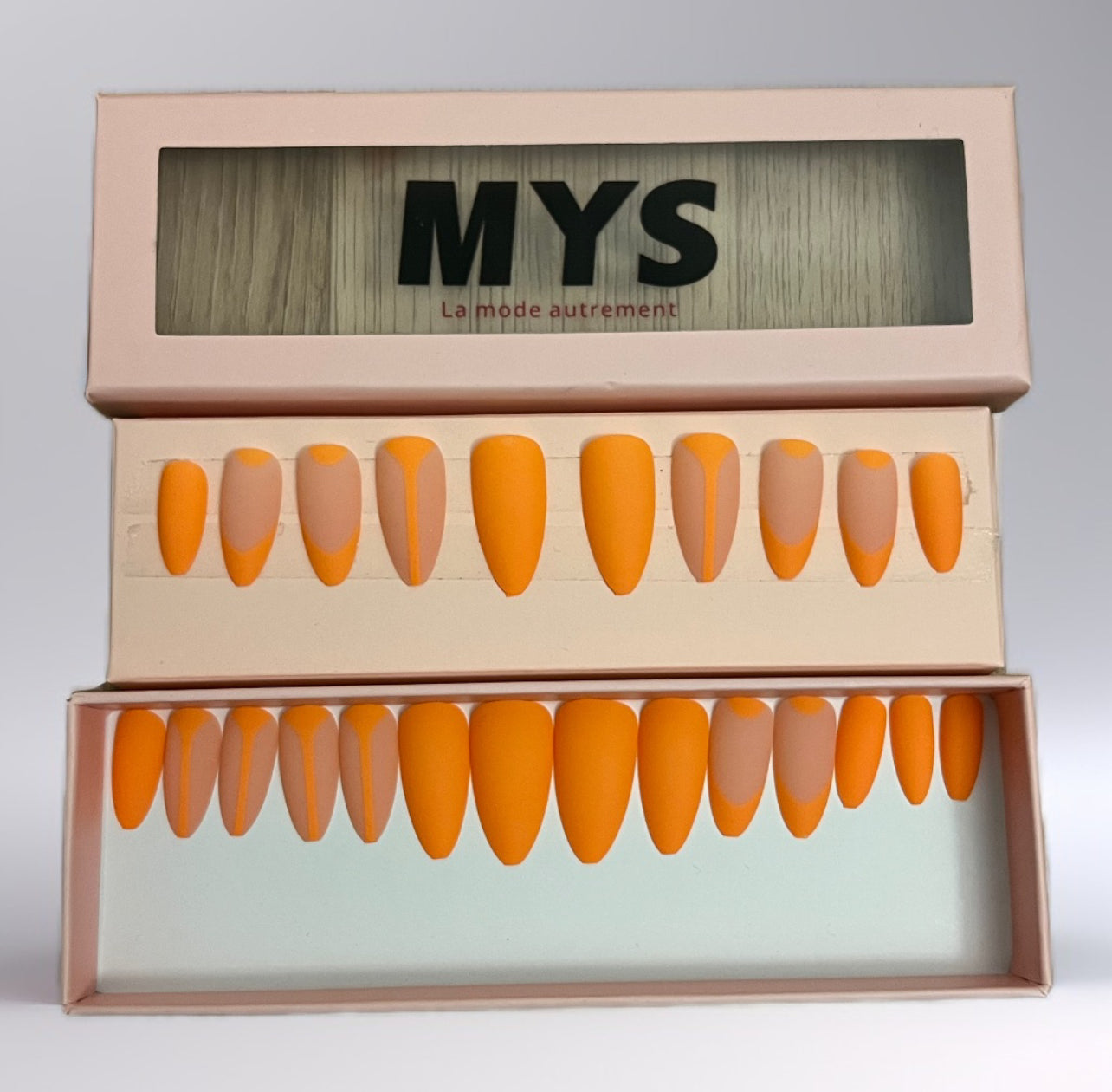 Le coffret contient 24 pièces de faux ongles, un séparateur d’ongles, une lime et deux colles à ongles.