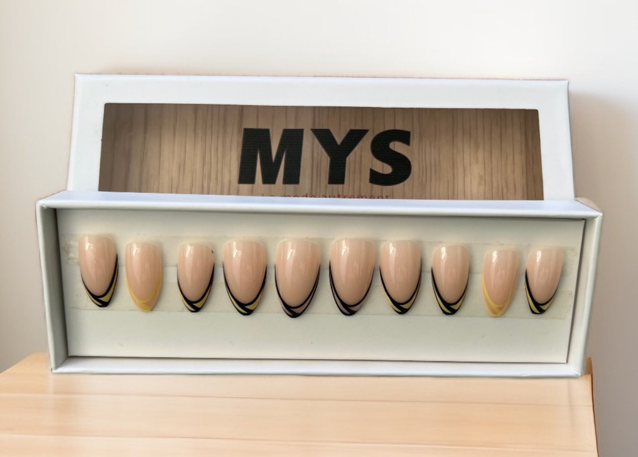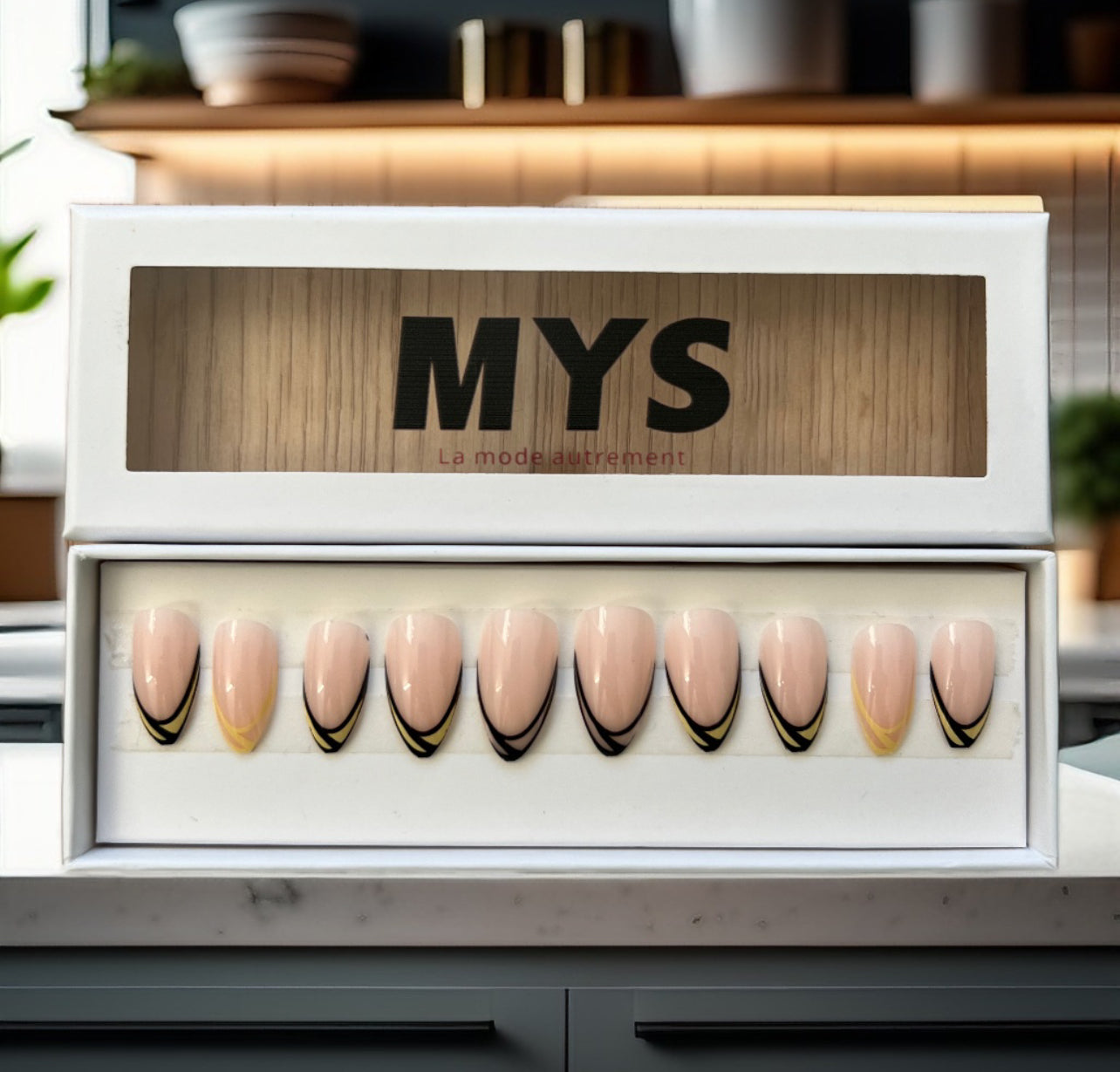 Le coffret contient 24 pièces de faux ongles, un séparateur d’ongles, une lime et deux colles à ongles.