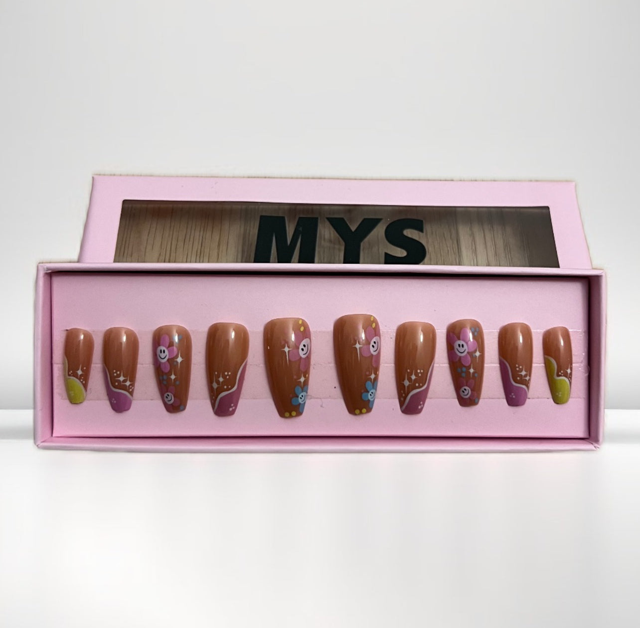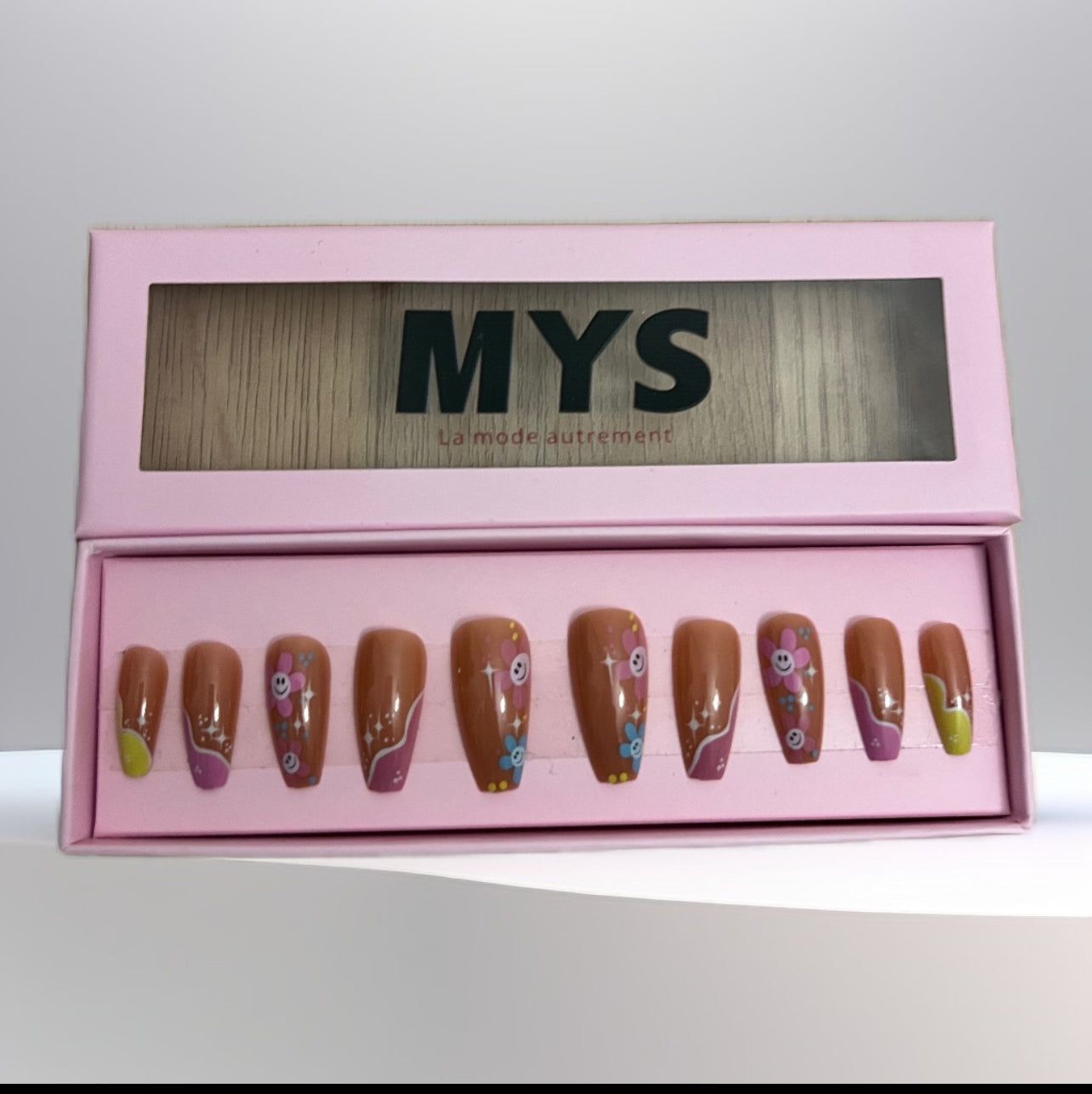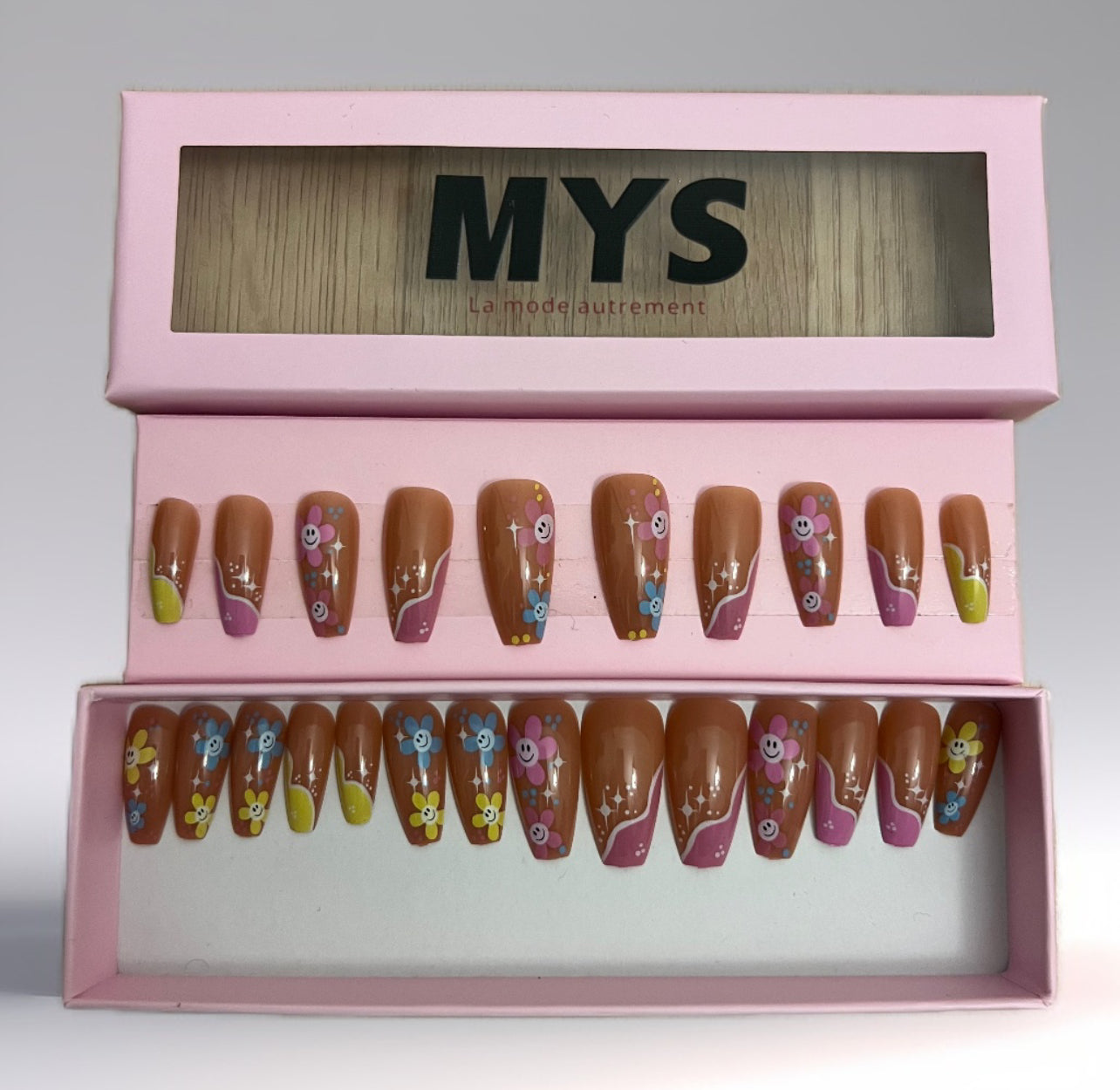 Le coffret contient 24 pièces de faux ongles, un séparateur d’ongles, une lime et deux colles à ongles.