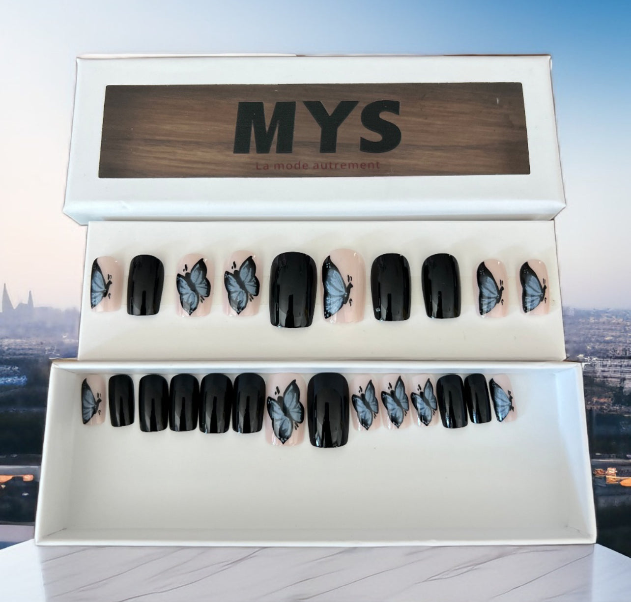 Le coffret contient 24 pièces de faux ongles, un séparateur d’ongles, une lime et deux colles à ongles.