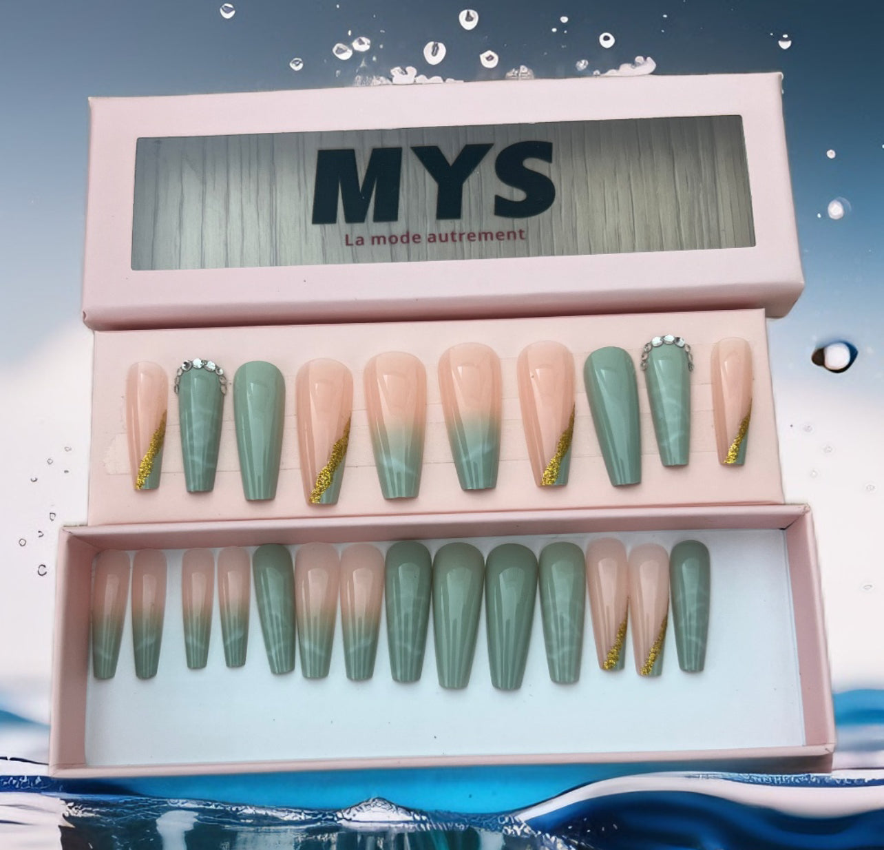 24 pièces de faux ongles. Contient : séparateur, lime, 2 colles à ongles.