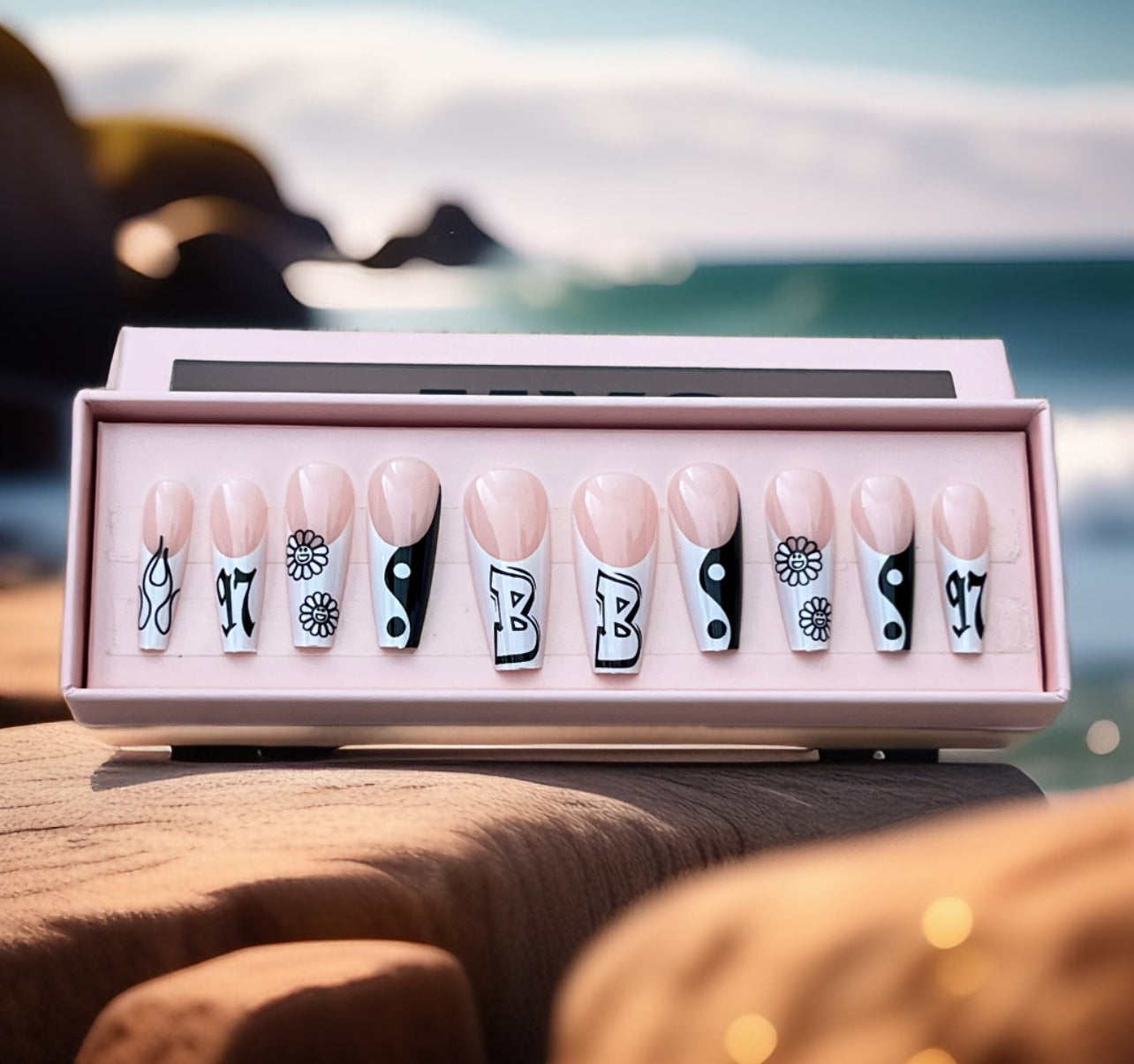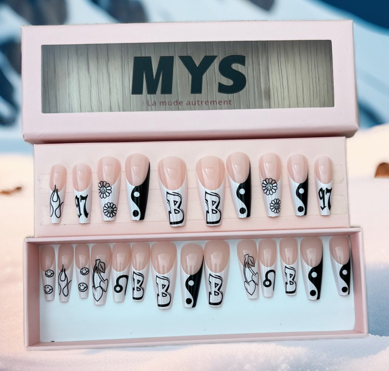 24 pièces de faux ongles. Contient : séparateur, lime, 2 colles à ongles.