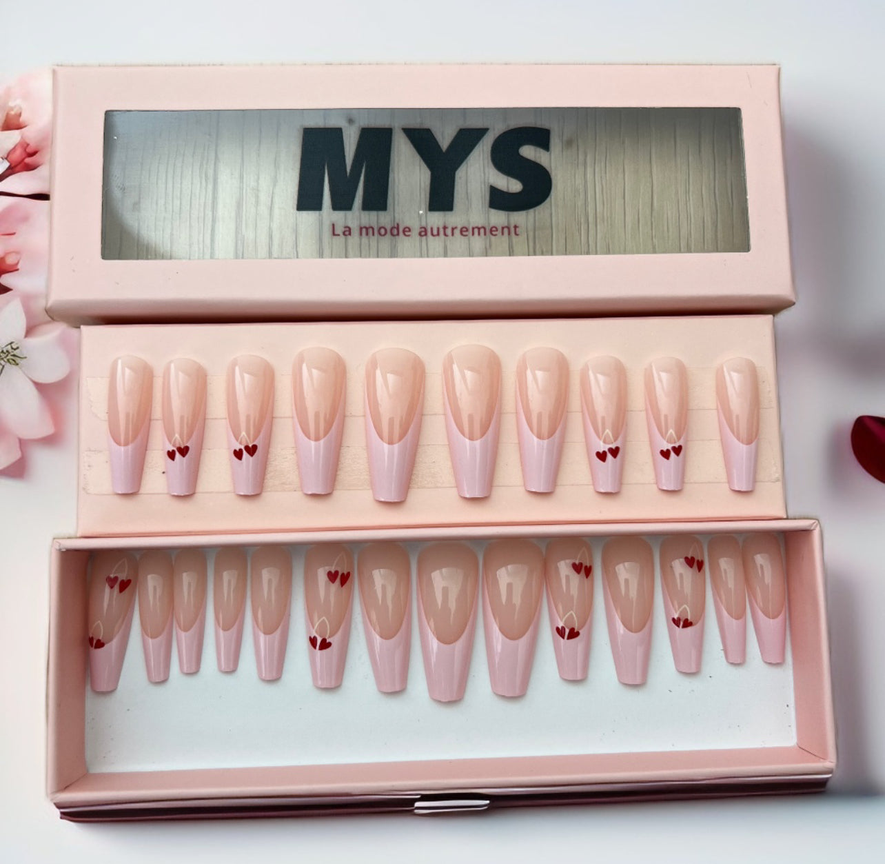 Rose chaud translucide pour un effet naturel. 24 pièces de faux ongles. Contient : séparateur, lime, 2 colles à ongles.