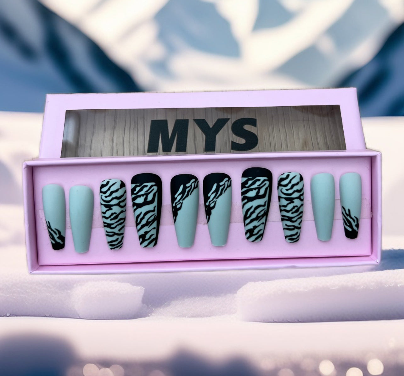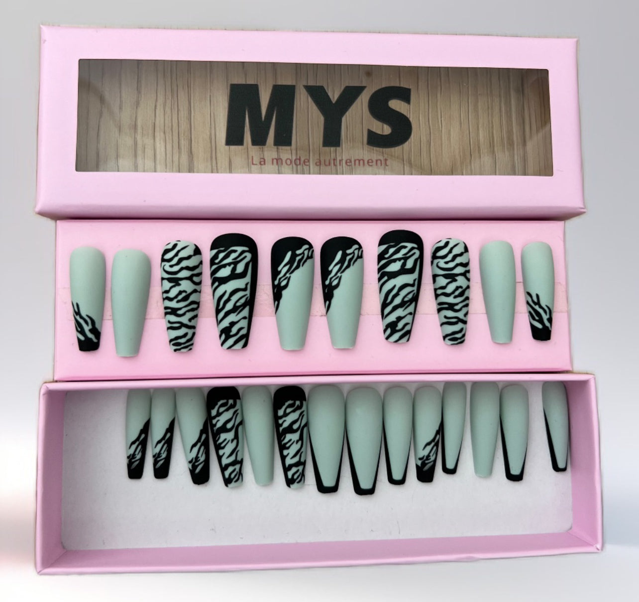 Le coffret contient 24 pièces de faux ongles, un séparateur d’ongles, une lime et deux colles à ongles.