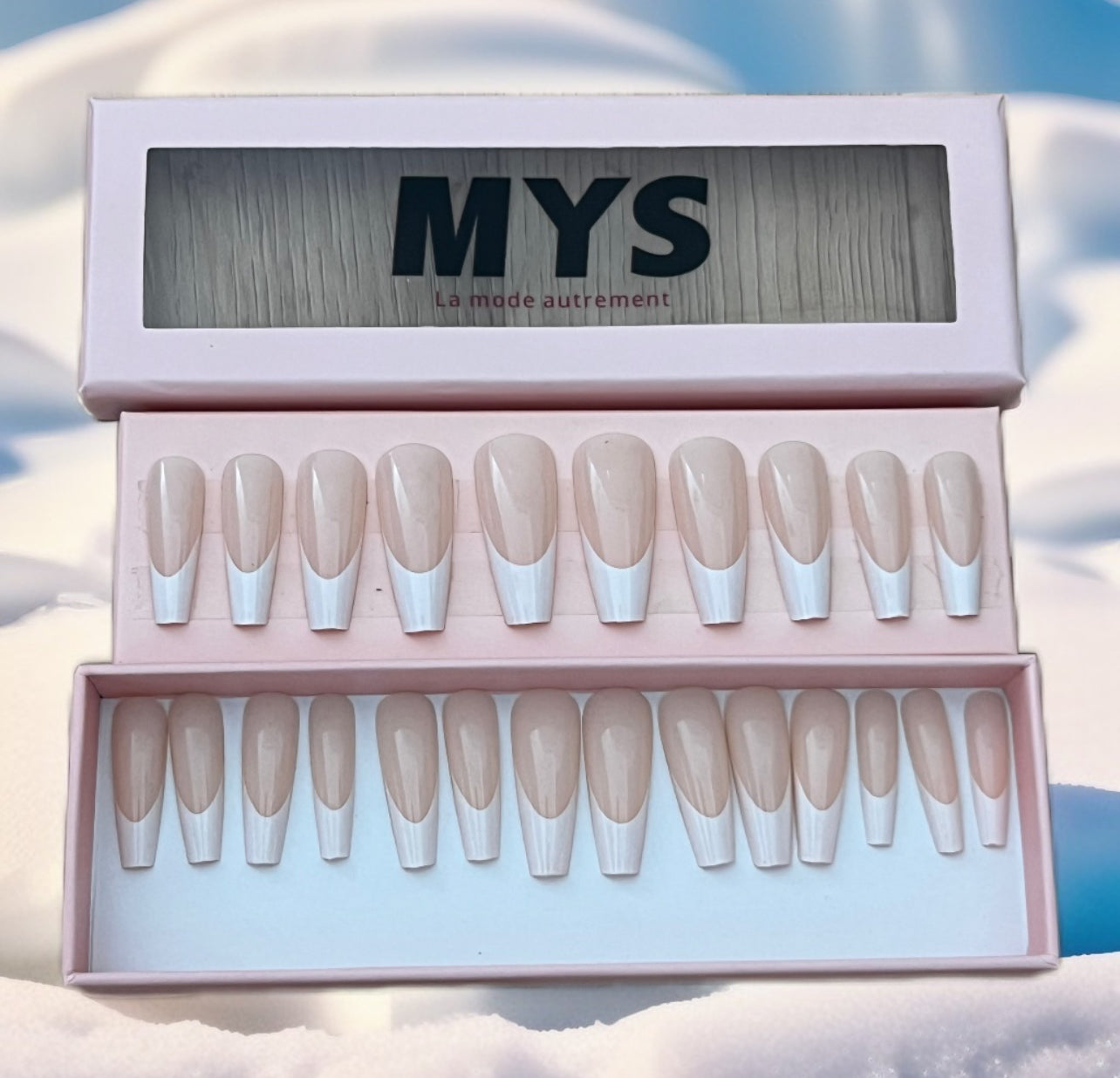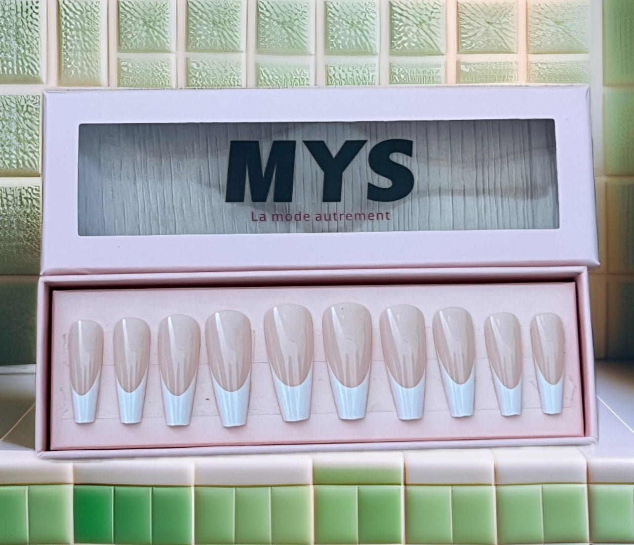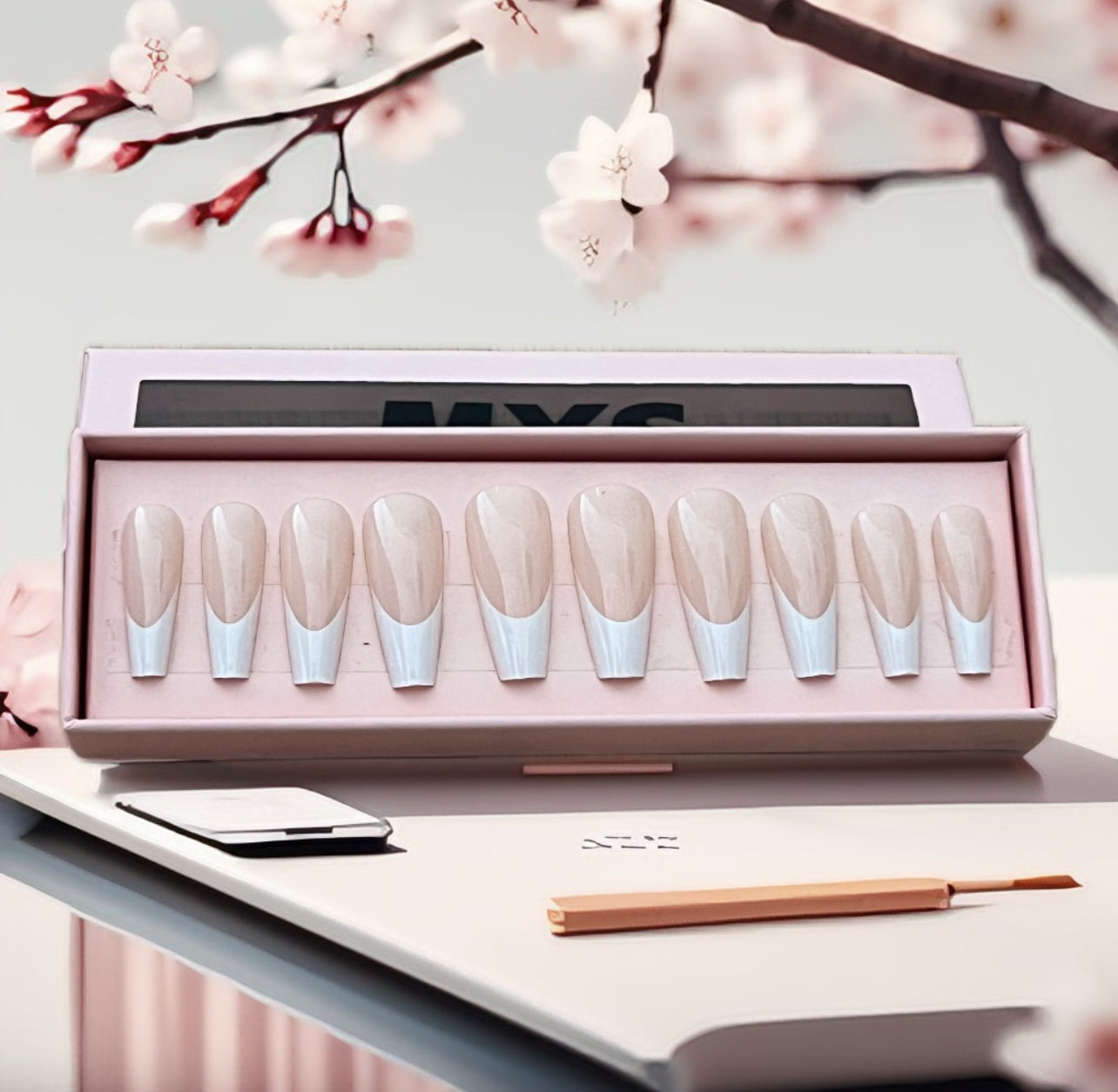 Beige clair semi-mat, discret et naturel. 24 pièces de faux ongles. Contient : séparateur, lime, 2 colles à ongles.