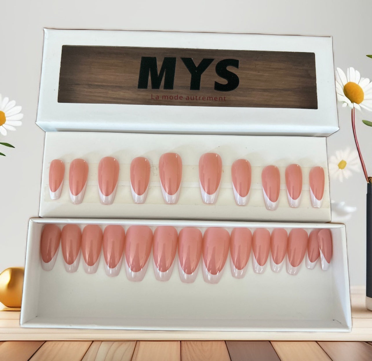 Le coffret contient 24 pièces de faux ongles, un séparateur d’ongles, une lime et deux colles à ongles.